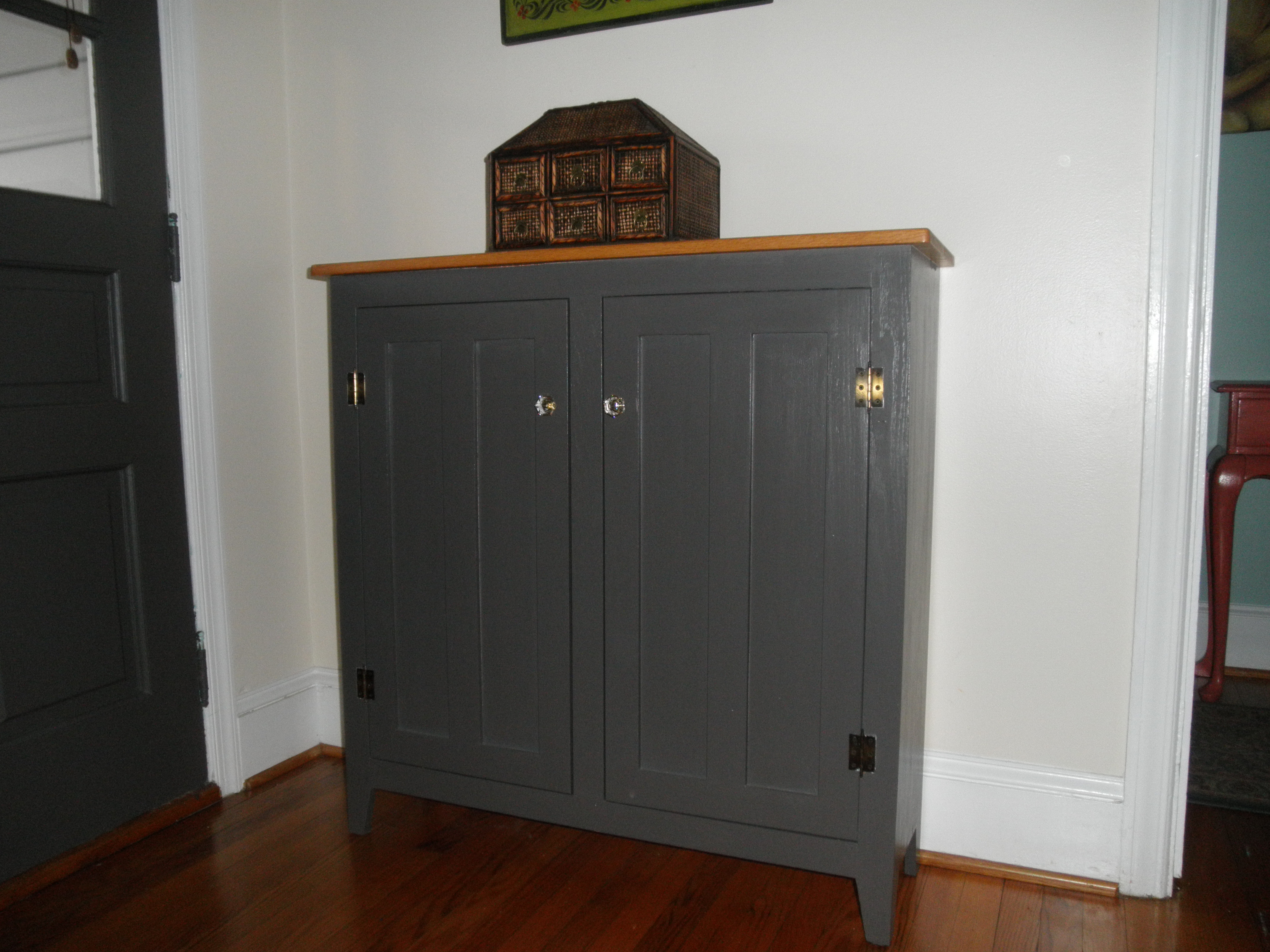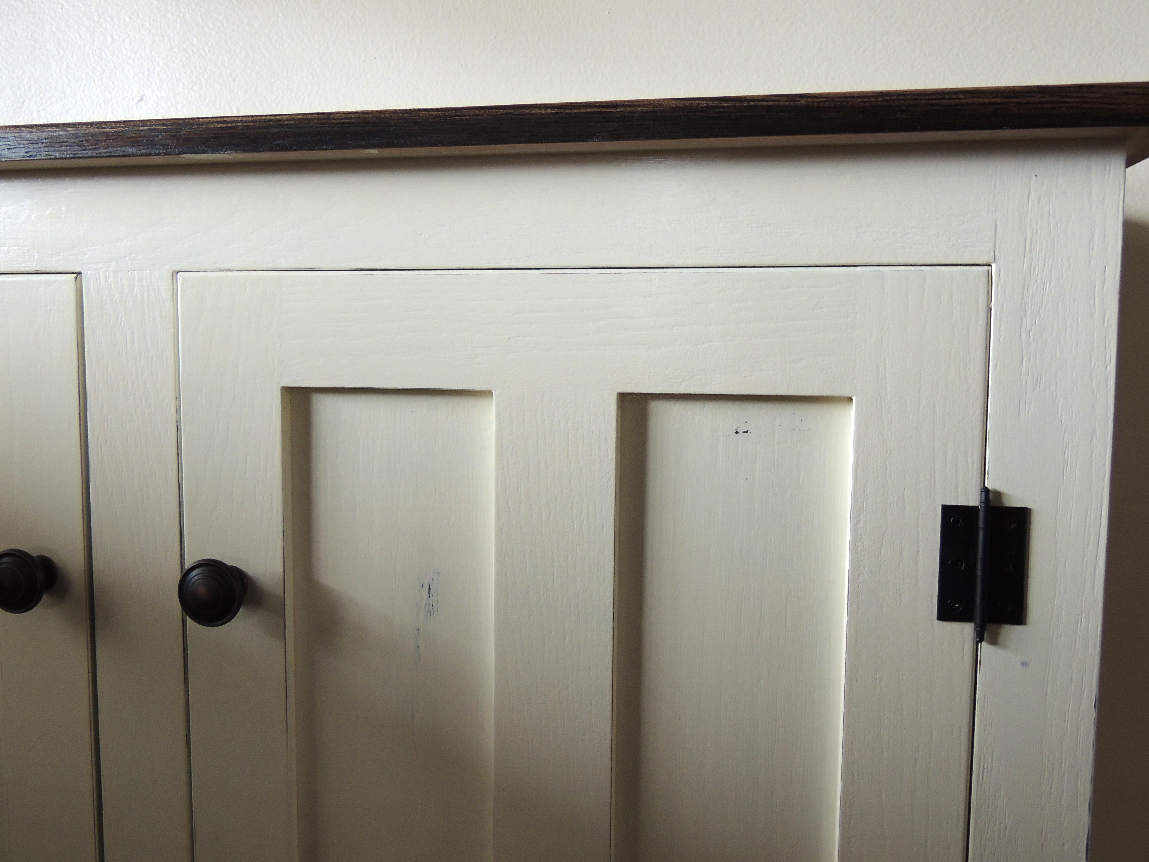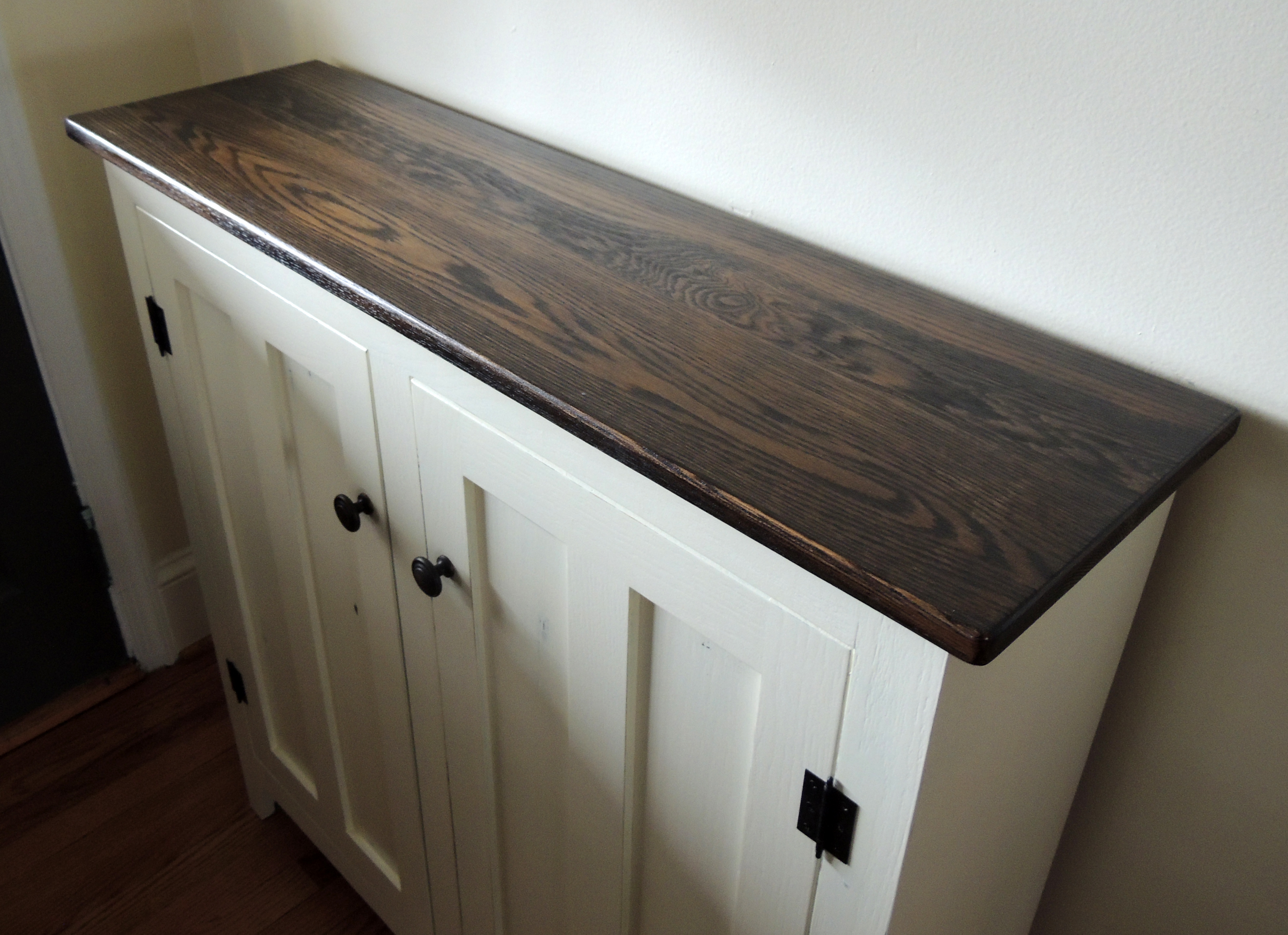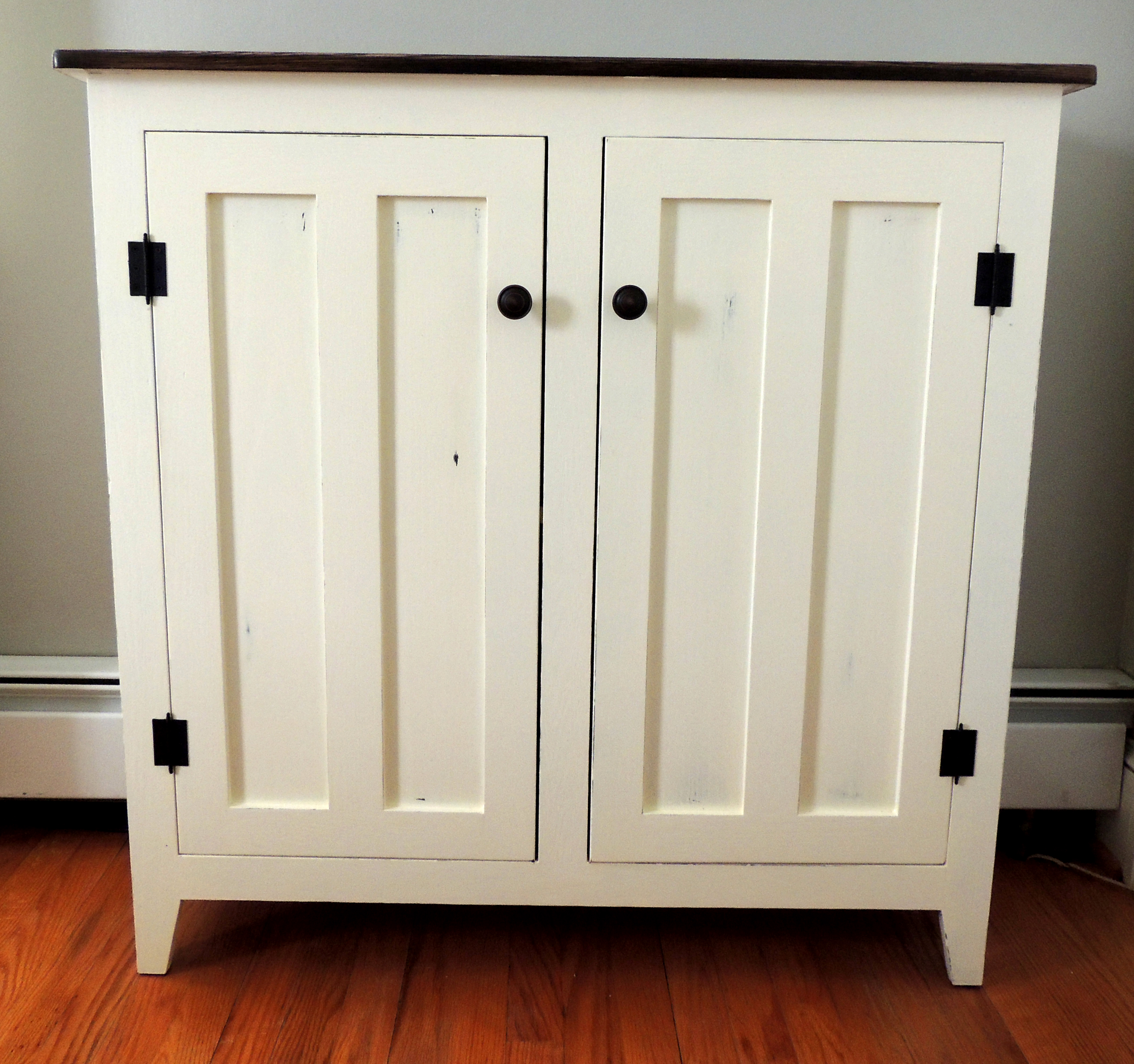 little white cabinet Posted on March 10, 2013 by amycoale 0 Before – painted grey with natural oak top After – I sanded & stained the top a dark espresso color, then painted the rest of the cabinet a creamy white. Then, I sanded to distress a little – love how the grey paint comes through. Share this:TweetLike Loading... Related